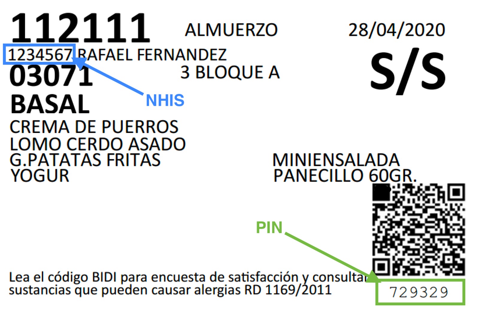 Usted debe elegir el menú antes de las 14.00